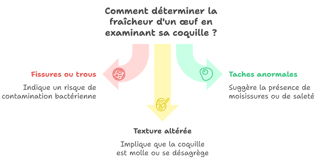 Si la coquille est fêlée ou trouée avant la cuisson, l’œuf ne doit pas être ingéré. C’est une des premières façons de vérifier la fraîcheur et d’éviter de consommer des œufs périmés.